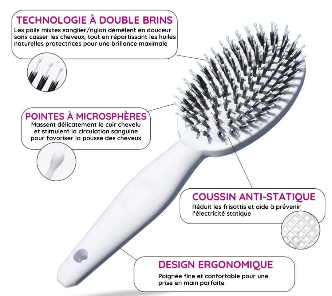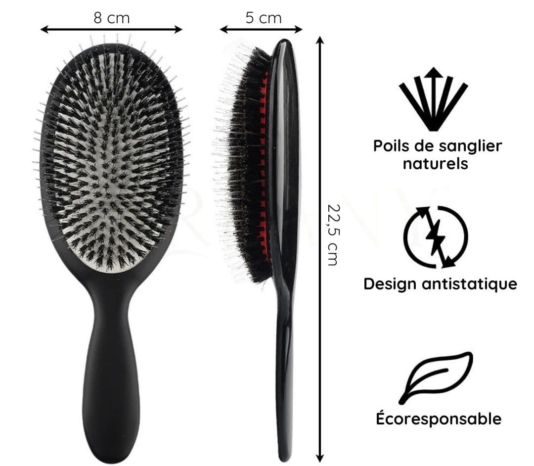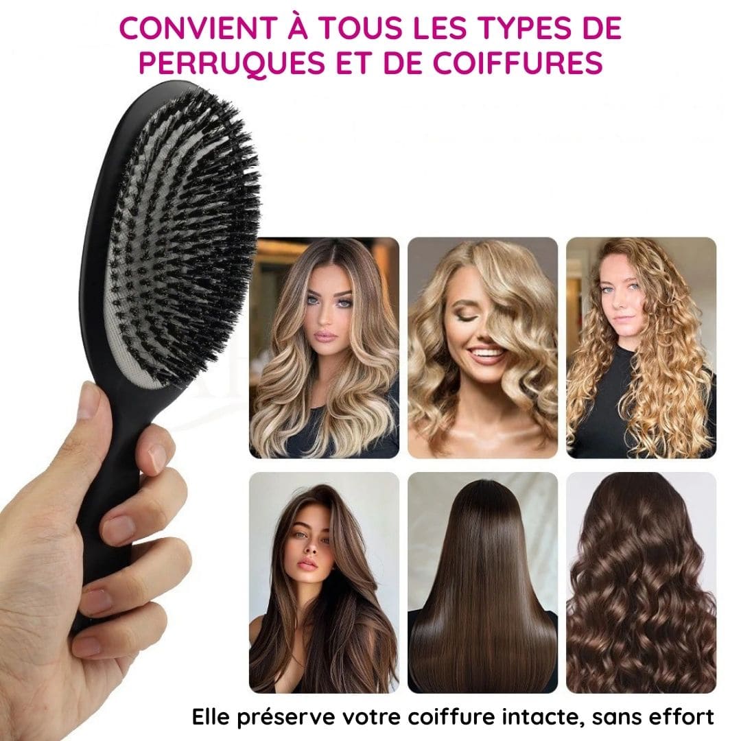 Brosse Lissante en Poils de Sanglier – Douceur, Brillance & Coiffage Sans Frisottis